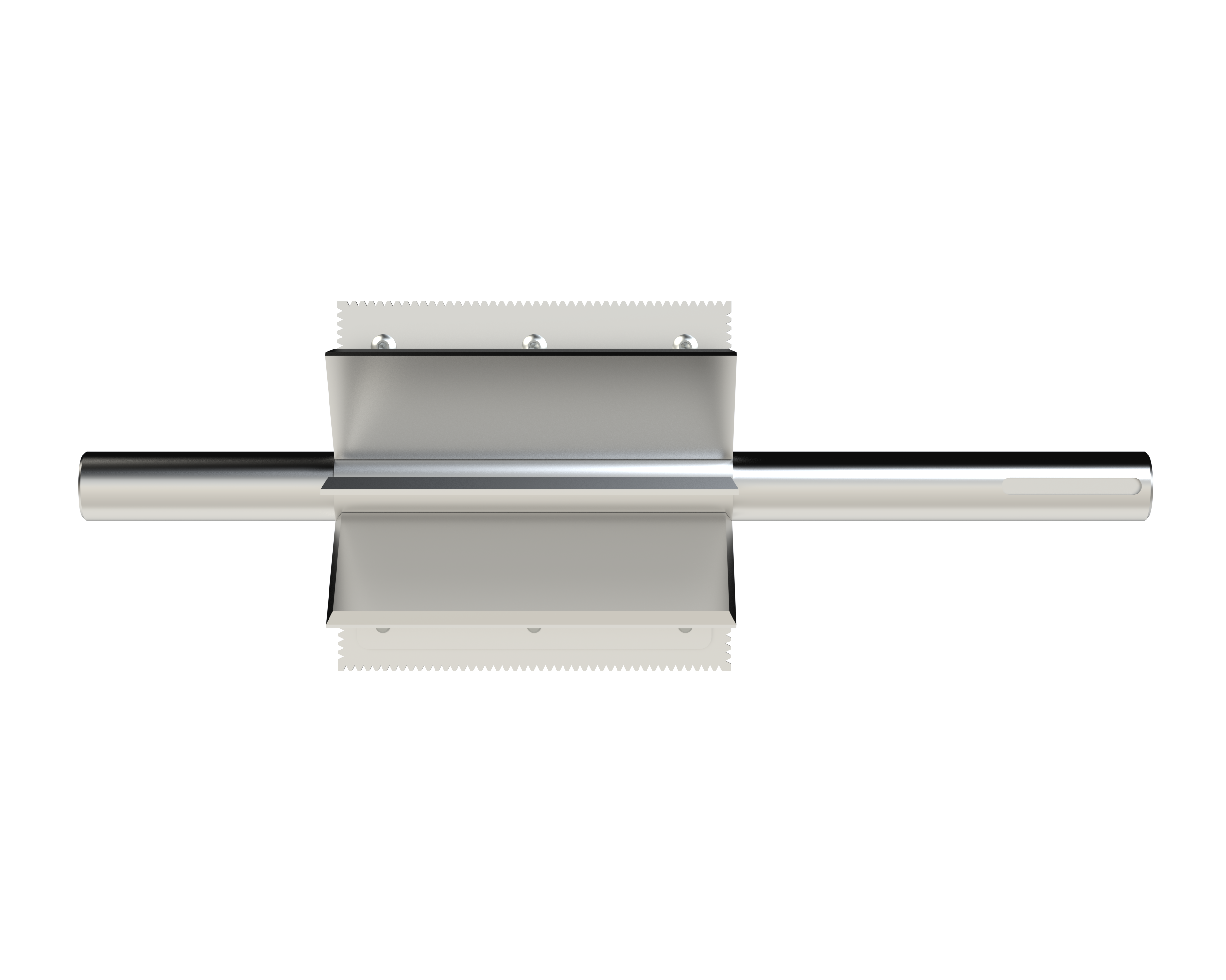 - The two bolt-on serrated tips are counter aligned for full scraping coverage