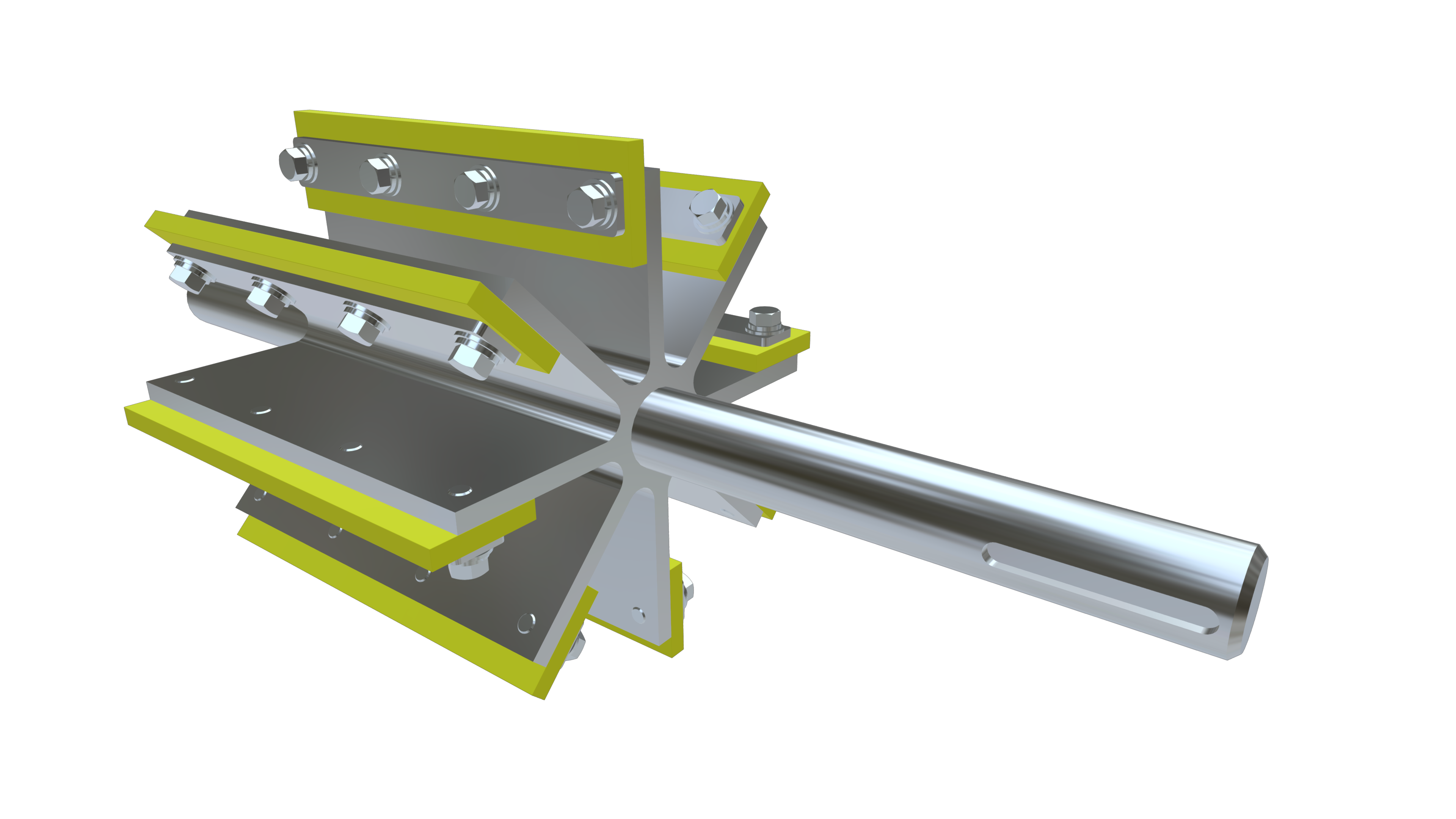 This rotor is used with plastic pellets, plastic regrind, plastic flakes, wood dust, wood pellets and fibrous materials.