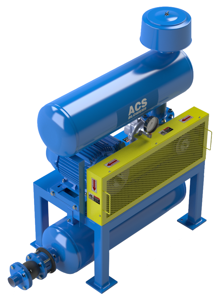 - Roots positive displacement blower; sized and specified to application-specific requirements.