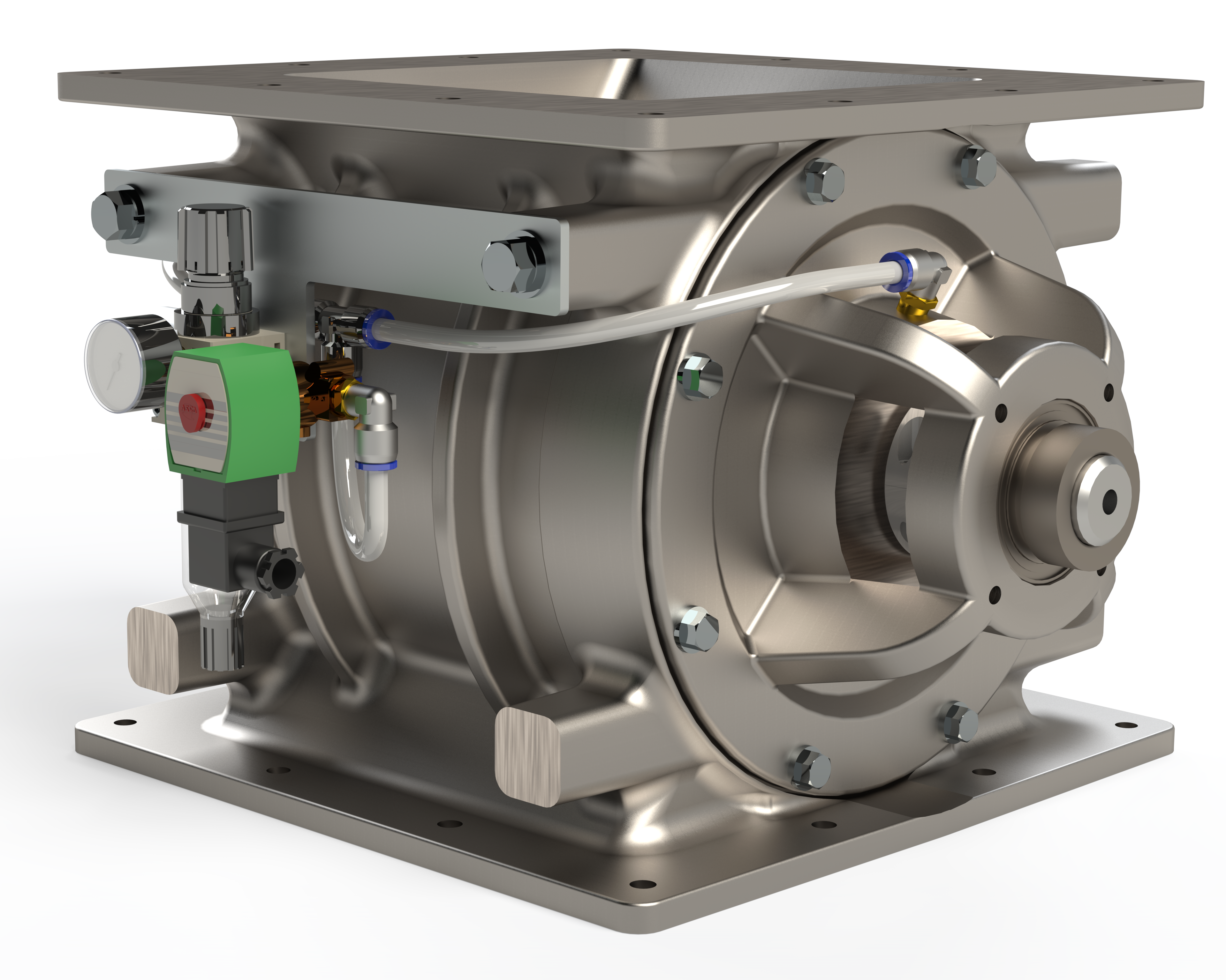 Air purge kits supply compressed air to the rotary valve to prevent wear and extend longevity