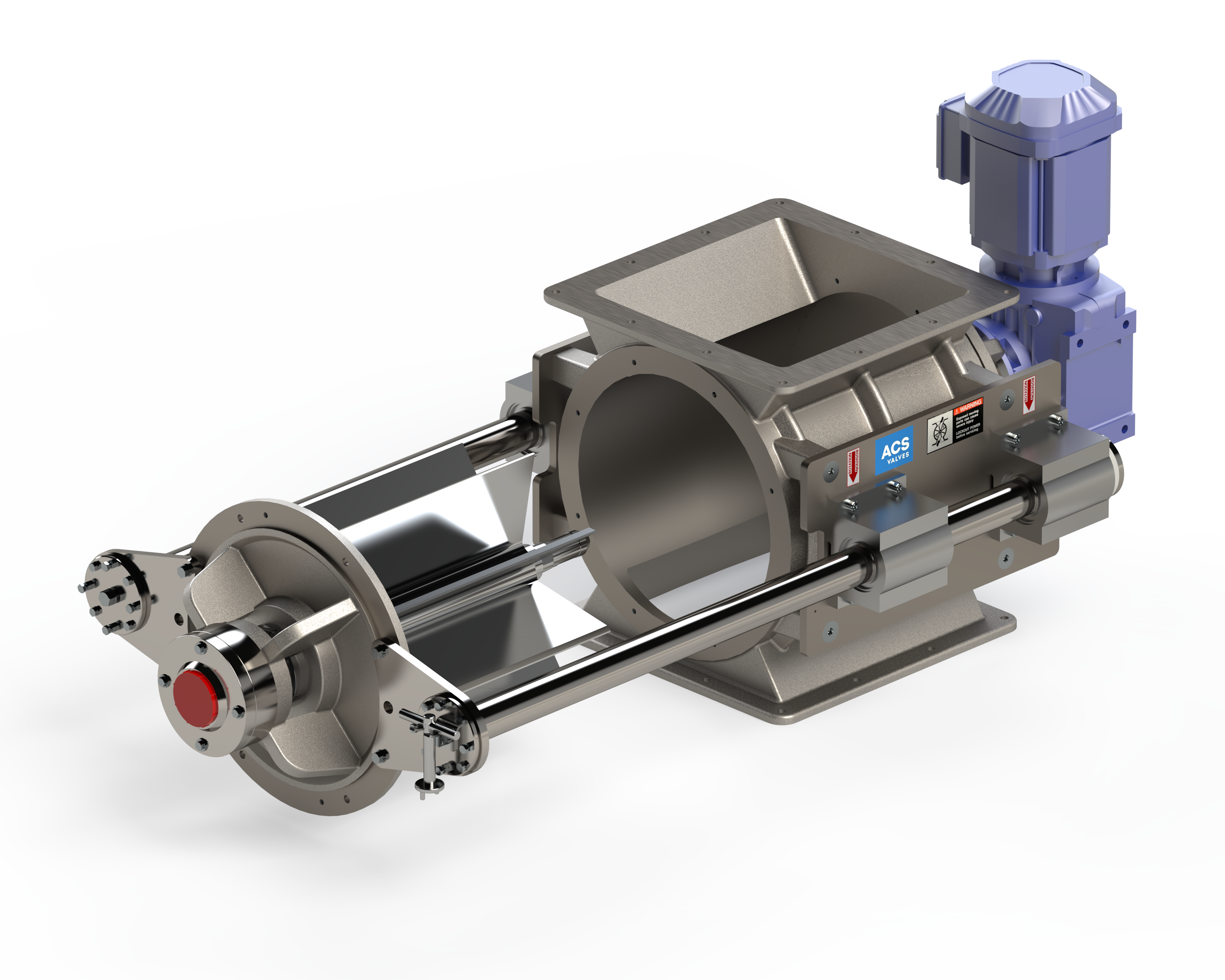 Rotary Valve for Metering, Feeding and Airlock ApplicationsThe CI Series rotary valves are also available in sanitary 304 or 316 cast stainless steel models and offer the ACS RotorRail™ quick-clean feature.