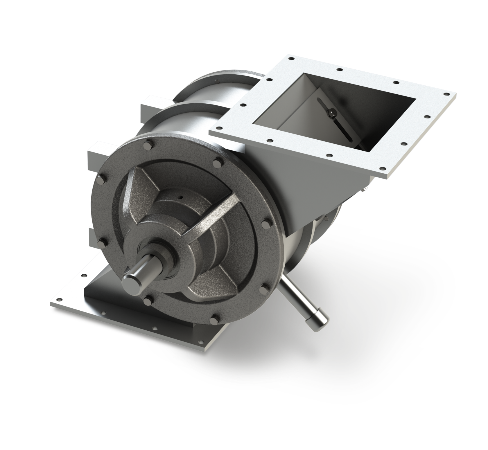 Rotary Valve for Metering, Feeding and Airlock ApplicationsFor handling of material such as pellets, beads, and granules that require protection from shearing; side inlet with adjustable material flow control ensures accurate rotor pocket filling without material shearing.